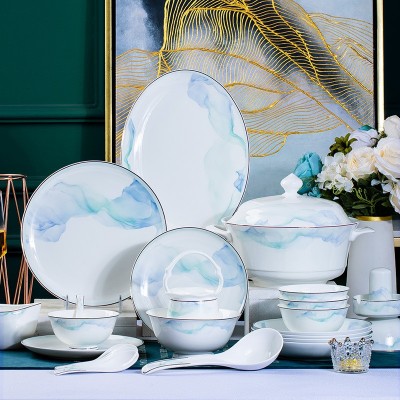 立即抢购景德镇高端骨瓷餐具家用陶瓷碗饭碗碗碟套装缥缈简约碗盘批发送礼 1套