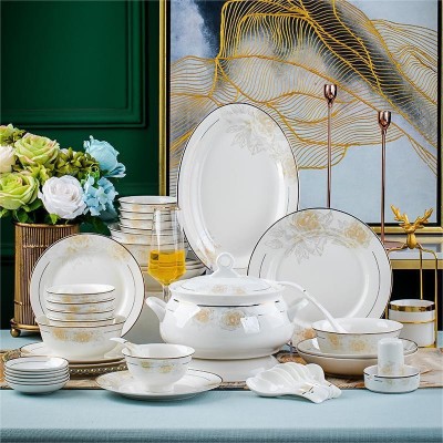 立即抢购碗碟盘套装家用高端陶瓷碗盘碗筷面碗全套景德镇骨瓷礼品餐具批发 1套