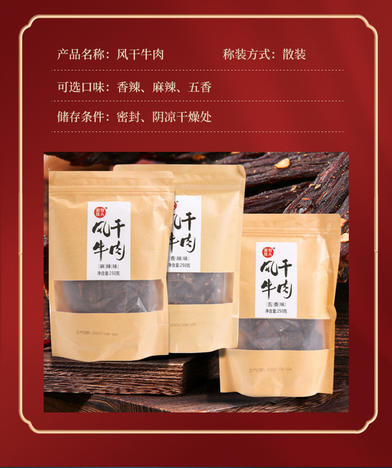本网页所展示的有关【疯味世代袋装风干牛肉250g 四川五香味香辣味风干牛肉1袋_四川_成都疯味世代食品有限公司】的信息/图片/参数等由走进大理网的会员【成都疯味世代食品有限公司】提供,由走进大理网会员【成都疯味世代食品有限公司】自行对信息/图片/参数等的真实性、准确性和合法性负责,本平台(本网站)仅提供展示服务,请谨慎交易,因交易而产生的法律关系及法律纠纷由您自行协商解决,本平台(本网站)对此不承担任何责任。您在本网页可以浏览【疯味世代袋装风干牛肉250g 四川五香味香辣味风干牛肉1袋_四川_成都疯味世代食品有限公司】有关的信息/图片/价格等及提供【疯味世代袋装风干牛肉250g 四川五香味香辣味风干牛肉1袋_四川_成都疯味世代食品有限公司】的商家公司简介、联系方式等信息。