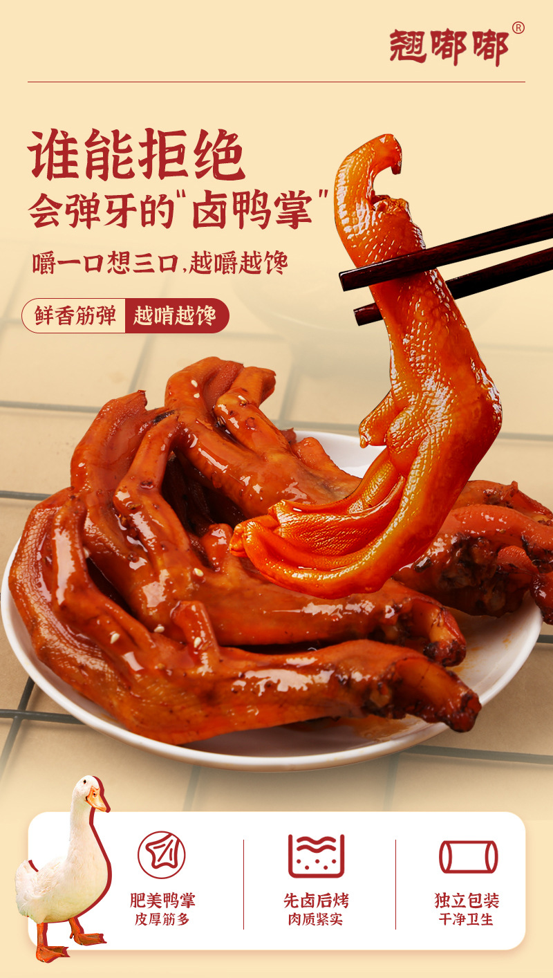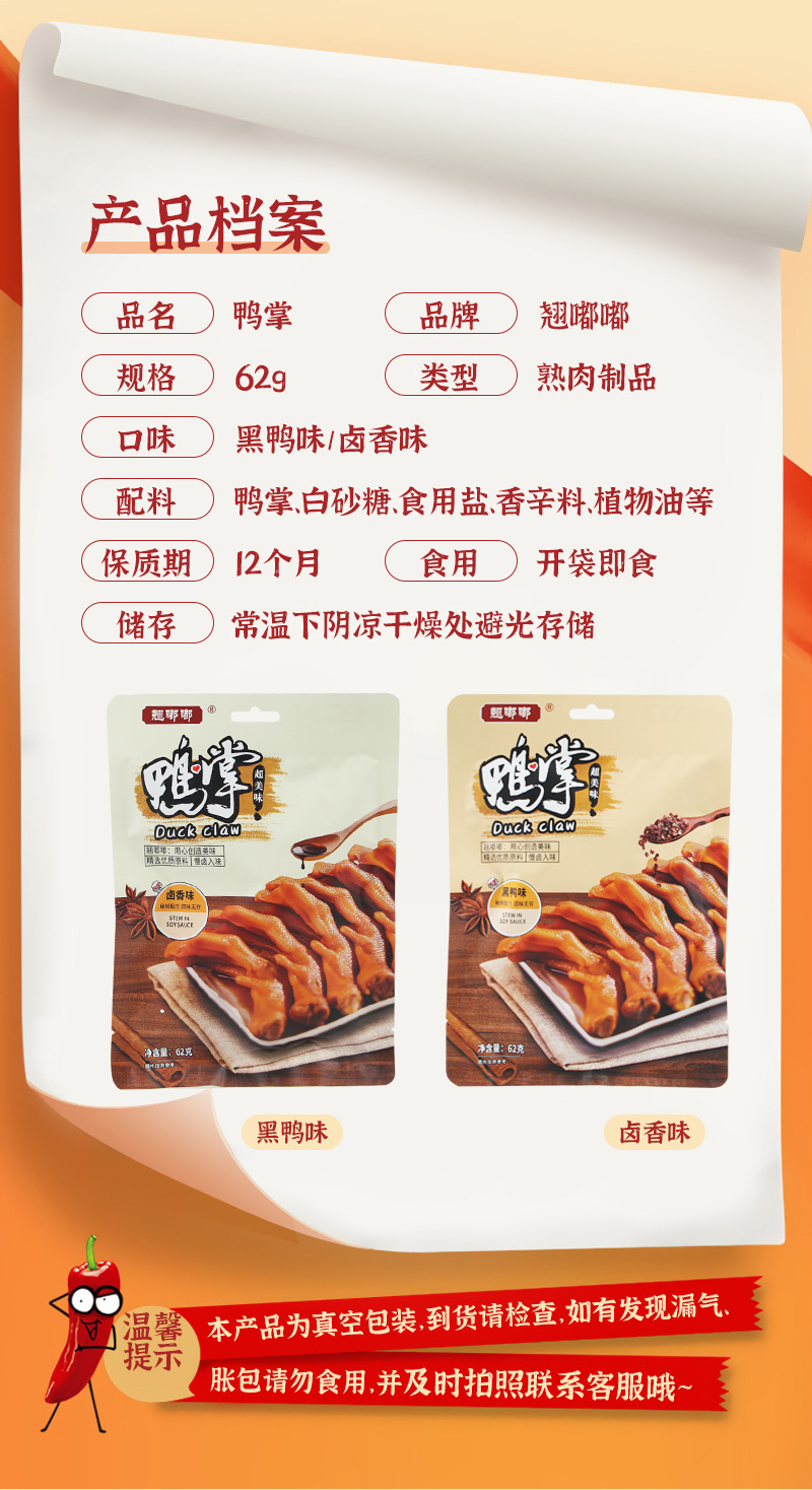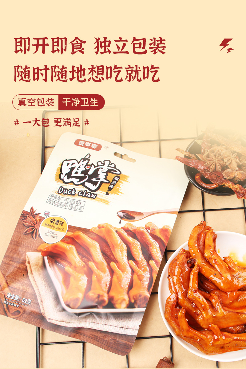 翘嘟嘟鸭掌香卤62g香辣卤味鸭爪鸭脚掌独立包装宿舍休闲零食小吃 1袋