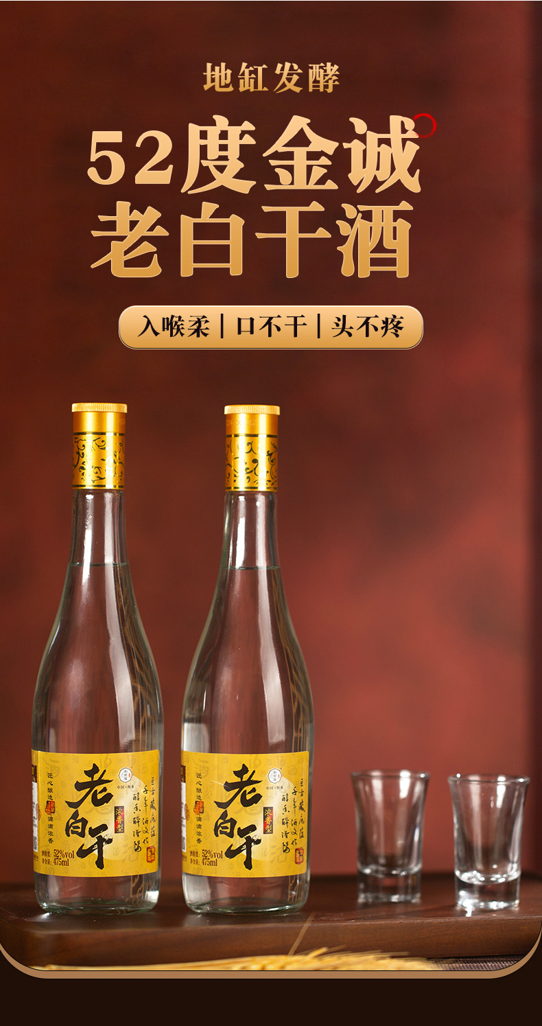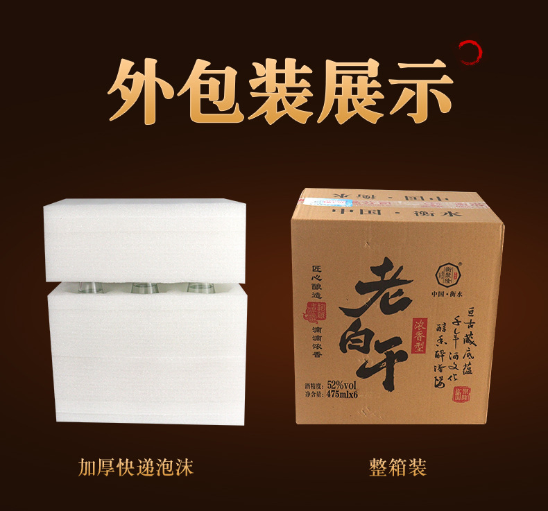 整箱6瓶53度老白干酒自饮口粮酒纯粮酒老白干475ml浓香型白酒1箱