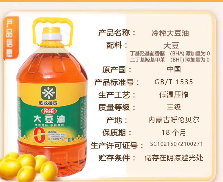本网页所展示的有关【厂家批发东北冷榨大豆油5L装 非转基因 无添加健康压榨食用油 1桶_黑龙江_】的信息/图片/参数等由走进大理网的会员【】提供,由走进大理网会员【】自行对信息/图片/参数等的真实性、准确性和合法性负责,本平台(本网站)仅提供展示服务,请谨慎交易,因交易而产生的法律关系及法律纠纷由您自行协商解决,本平台(本网站)对此不承担任何责任。您在本网页可以浏览【厂家批发东北冷榨大豆油5L装 非转基因 无添加健康压榨食用油 1桶_黑龙江_】有关的信息/图片/价格等及提供【厂家批发东北冷榨大豆油5L装 非转基因 无添加健康压榨食用油 1桶_黑龙江_】的商家公司简介、联系方式等信息。