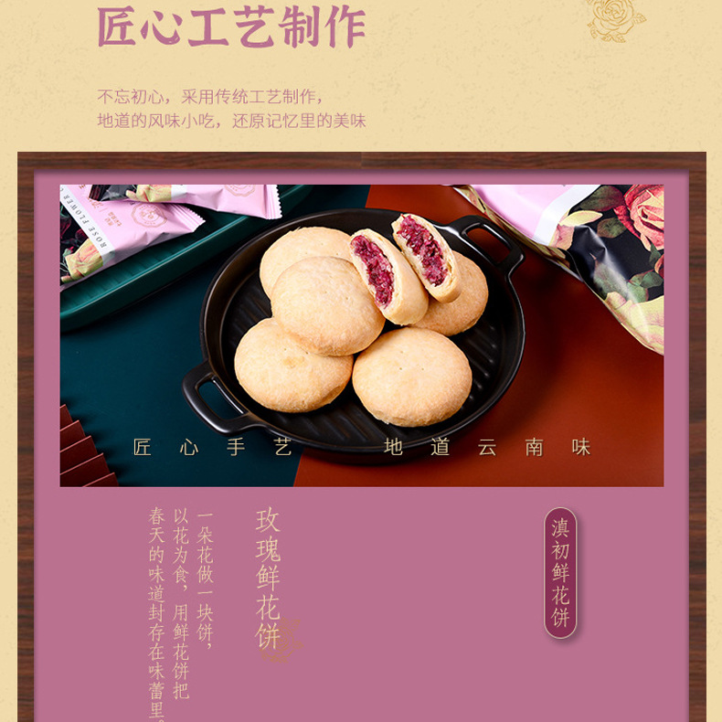 食品厂家直发玫瑰鲜花饼300g礼盒鲜花饼云南特产经典玫瑰 饼伴手礼10盒