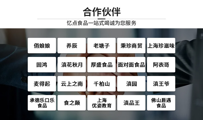 1、云南忆点食品有限公司研发、产出一体的源头工厂,占地5000㎡,仓库1000㎡,4个冷库。现代化生产加工工艺,引进先进技术设备,拥有杀菌釜、色选机、夹层锅等多台设备。是一个拥有完整、科学的质量管理体系的专业生产加工的公司。主要生产加工各种鲜花馅料、果酱、蜂蜜、蜜饯、果脯、红糖、冰糖、干制食用菌、牛肉酱、鲜花饼、月饼、代用茶等;产品资质齐全,食品安全全方位保障。公司以产品品质为本,重诚信,赢得了广大客户的信任与认可。