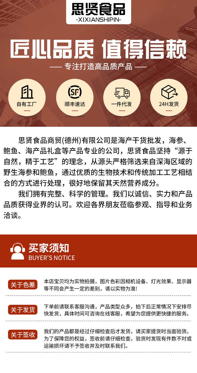本网页所展示的有关【批发深海纯淡干海参高泡发12cm节日送礼滋补品质淡干海参礼盒 1盒_山东_思贤食品商贸(德州)有限公司】的信息/图片/参数等由走进大理网的会员【思贤食品商贸(德州)有限公司】提供,由走进大理网会员【思贤食品商贸(德州)有限公司】自行对信息/图片/参数等的真实性、准确性和合法性负责,本平台(本网站)仅提供展示服务,请谨慎交易,因交易而产生的法律关系及法律纠纷由您自行协商解决,本平台(本网站)对此不承担任何责任。您在本网页可以浏览【批发深海纯淡干海参高泡发12cm节日送礼滋补品质淡干海参礼盒 1盒_山东_思贤食品商贸(德州)有限公司】有关的信息/图片/价格等及提供【批发深海纯淡干海参高泡发12cm节日送礼滋补品质淡干海参礼盒 1盒_山东_思贤食品商贸(德州)有限公司】的商家公司简介、联系方式等信息。