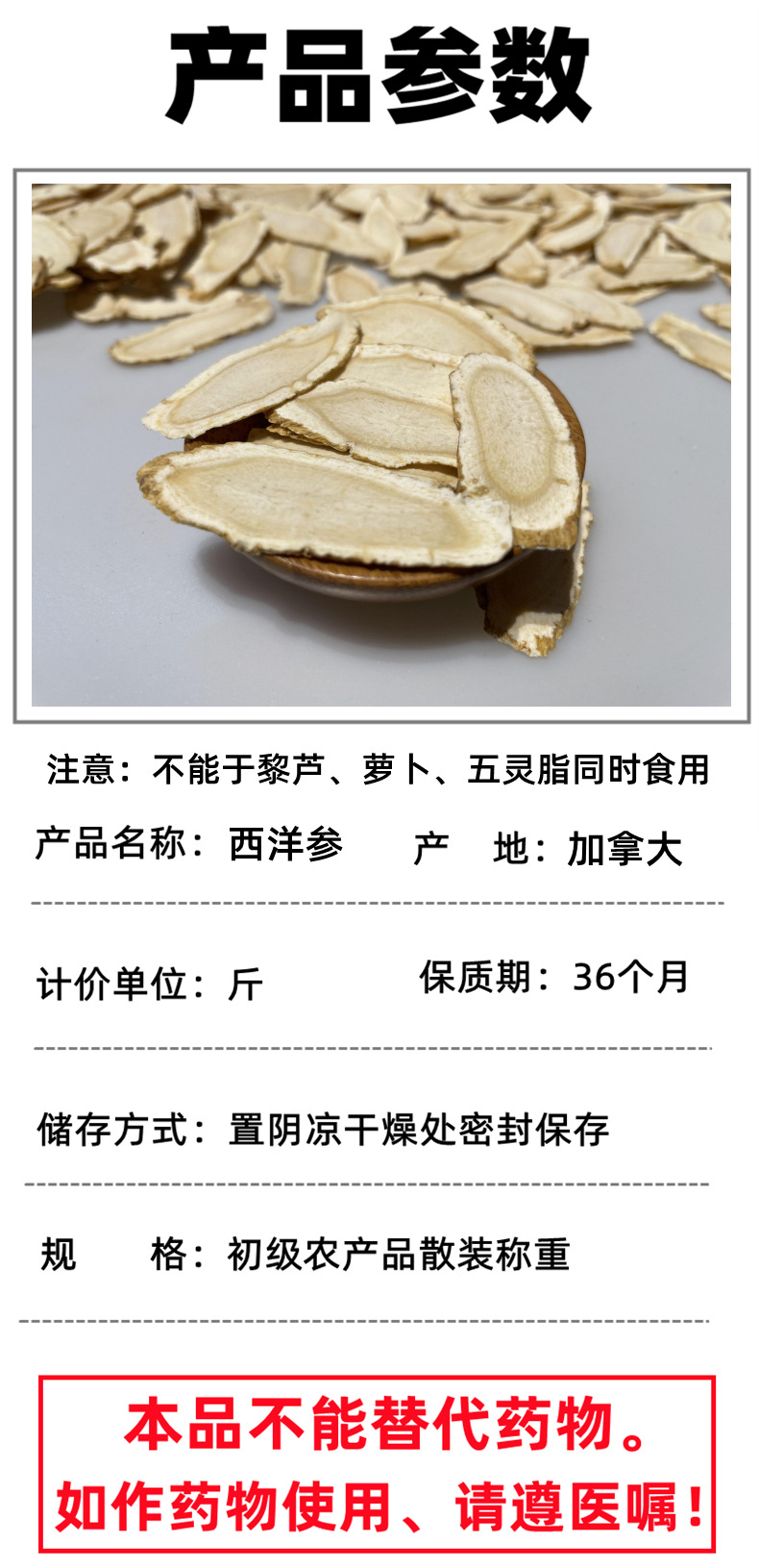 散装西洋参片批发加拿大西洋参瓜子片斜片花旗参片现货一件代发 1斤