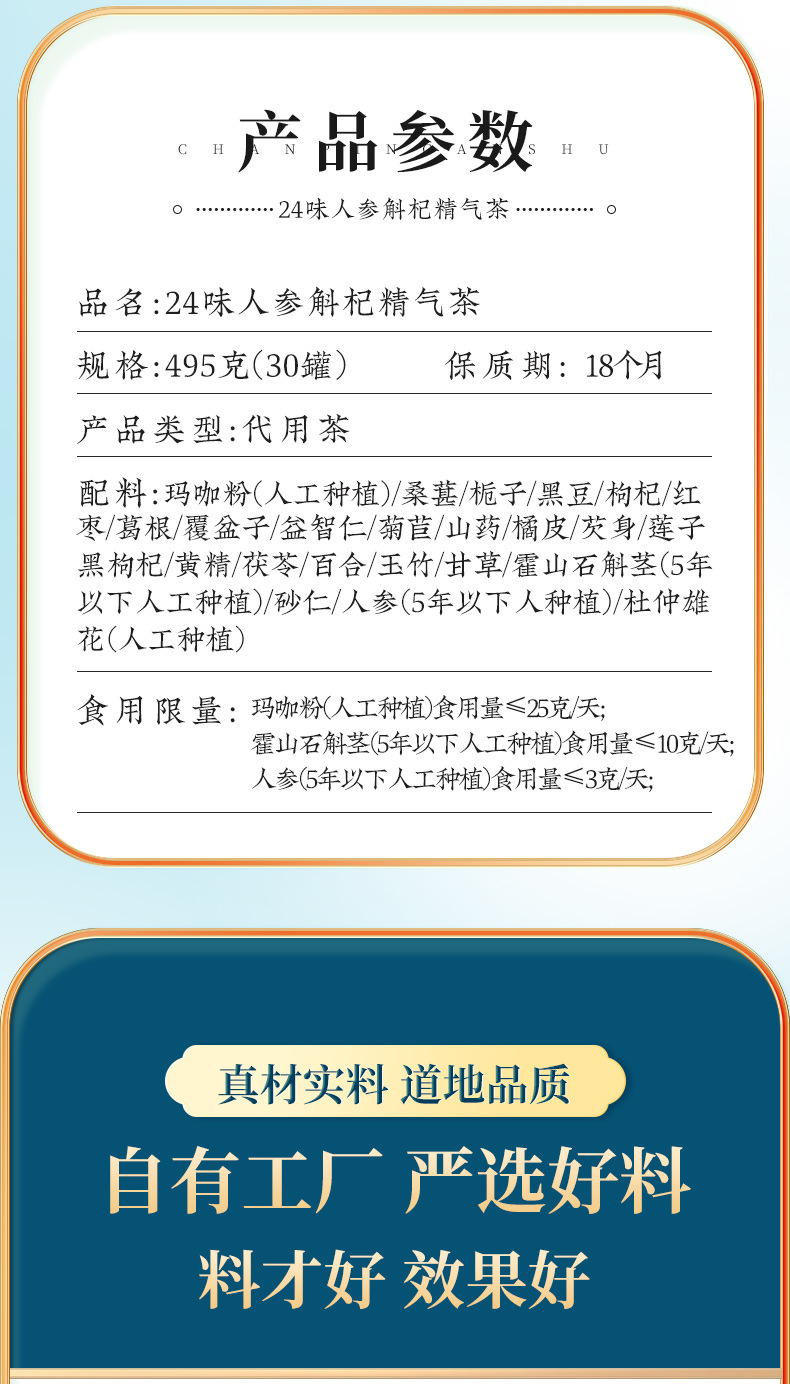 30小罐独立包装人参斛杞茶可代发 老谷同款24味人参斛杞精气茶头 1盒