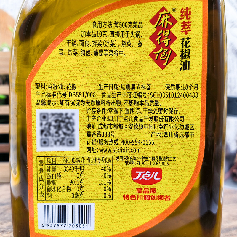 麻得倒红花椒油400ml丁点儿特麻麻油麻椒油汉源花椒油过桥米线 1瓶