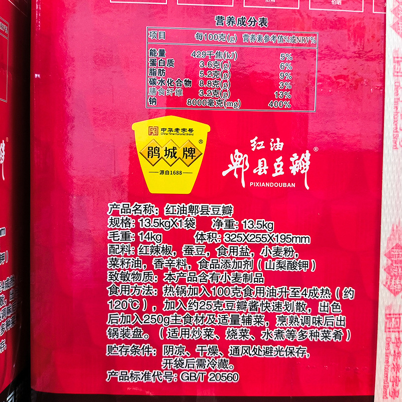 本网页所展示的有关【鹃城牌红油豆瓣酱13.5kg四川郫县鹃城豆瓣酱炒菜餐饮商用箱装 1包_四川_四川巴味鲜食品有限公司】的信息/图片/参数等由走进大理网的会员【四川巴味鲜食品有限公司】提供,由走进大理网会员【四川巴味鲜食品有限公司】自行对信息/图片/参数等的真实性、准确性和合法性负责,本平台(本网站)仅提供展示服务,请谨慎交易,因交易而产生的法律关系及法律纠纷由您自行协商解决,本平台(本网站)对此不承担任何责任。您在本网页可以浏览【鹃城牌红油豆瓣酱13.5kg四川郫县鹃城豆瓣酱炒菜餐饮商用箱装 1包_四川_四川巴味鲜食品有限公司】有关的信息/图片/价格等及提供【鹃城牌红油豆瓣酱13.5kg四川郫县鹃城豆瓣酱炒菜餐饮商用箱装 1包_四川_四川巴味鲜食品有限公司】的商家公司简介、联系方式等信息。