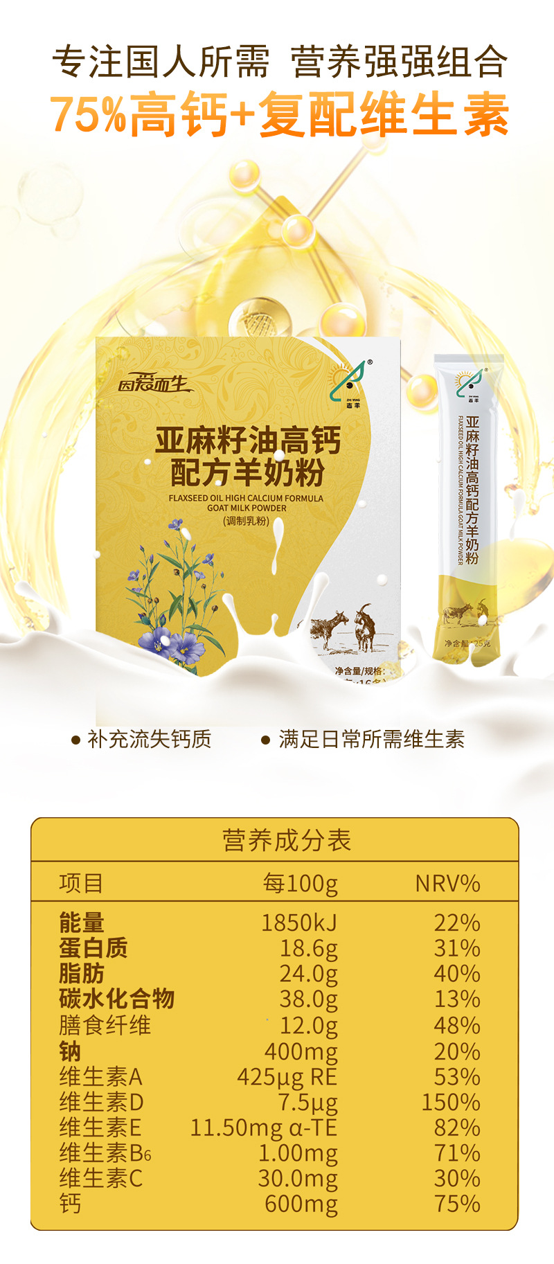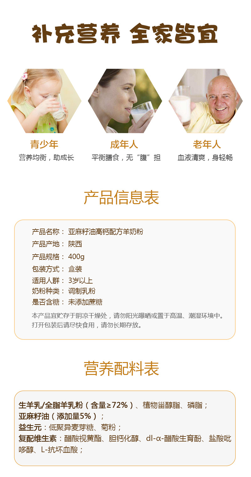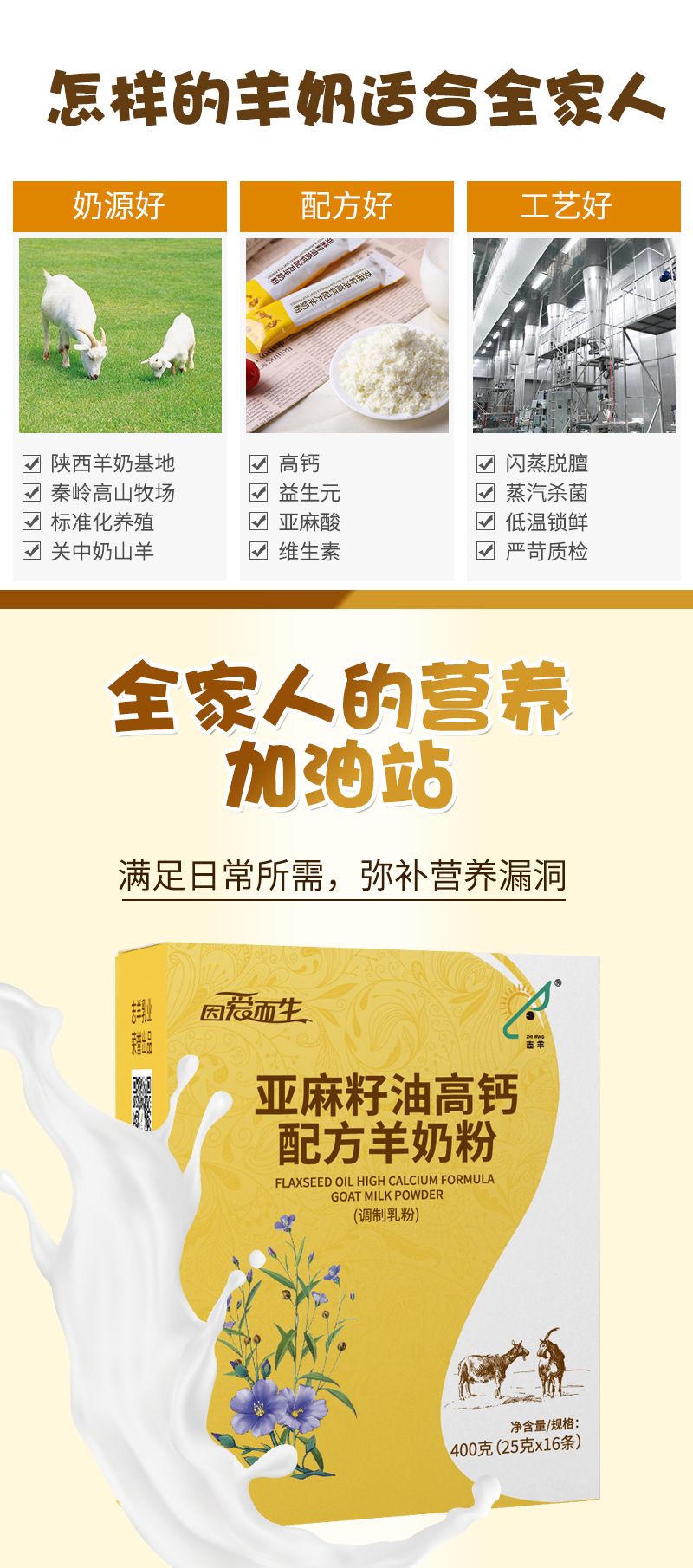 陕西富平羊奶粉中老年成人亚麻籽油高钙羊奶粉厂家直销批发 1盒