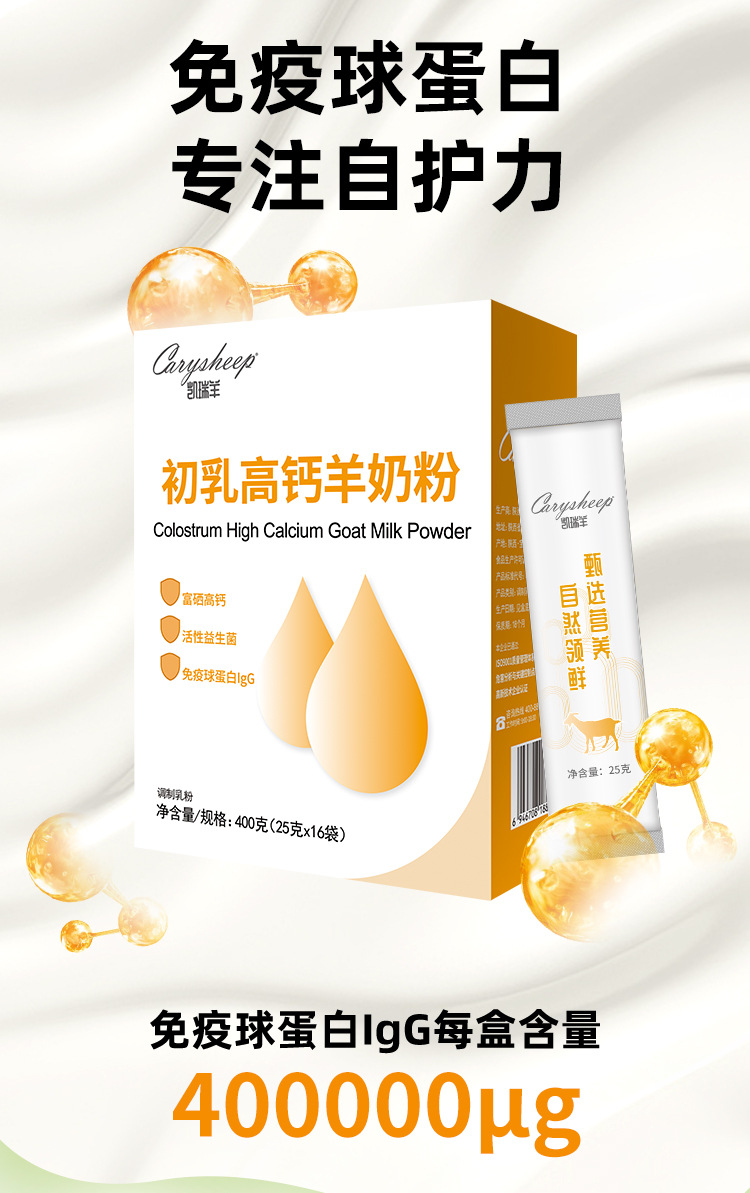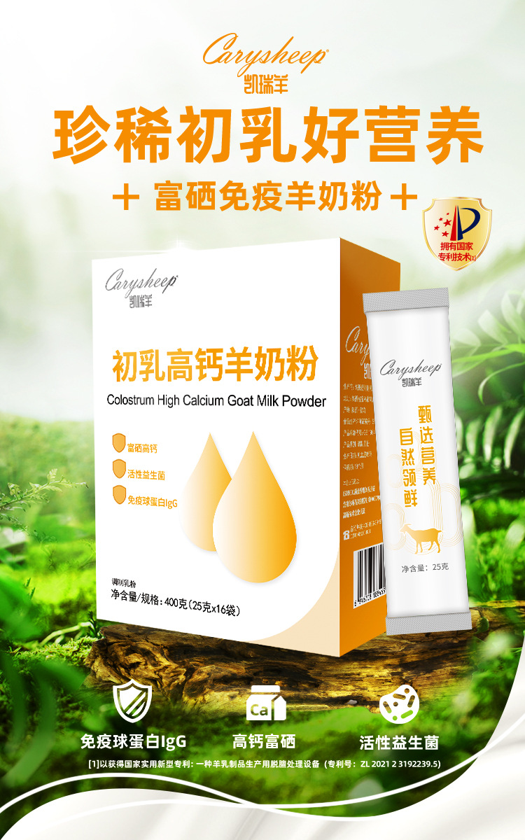 初乳高钙羊奶粉含免疫球蛋白无蔗糖益生菌富硒成人补钙400g女士 2盒