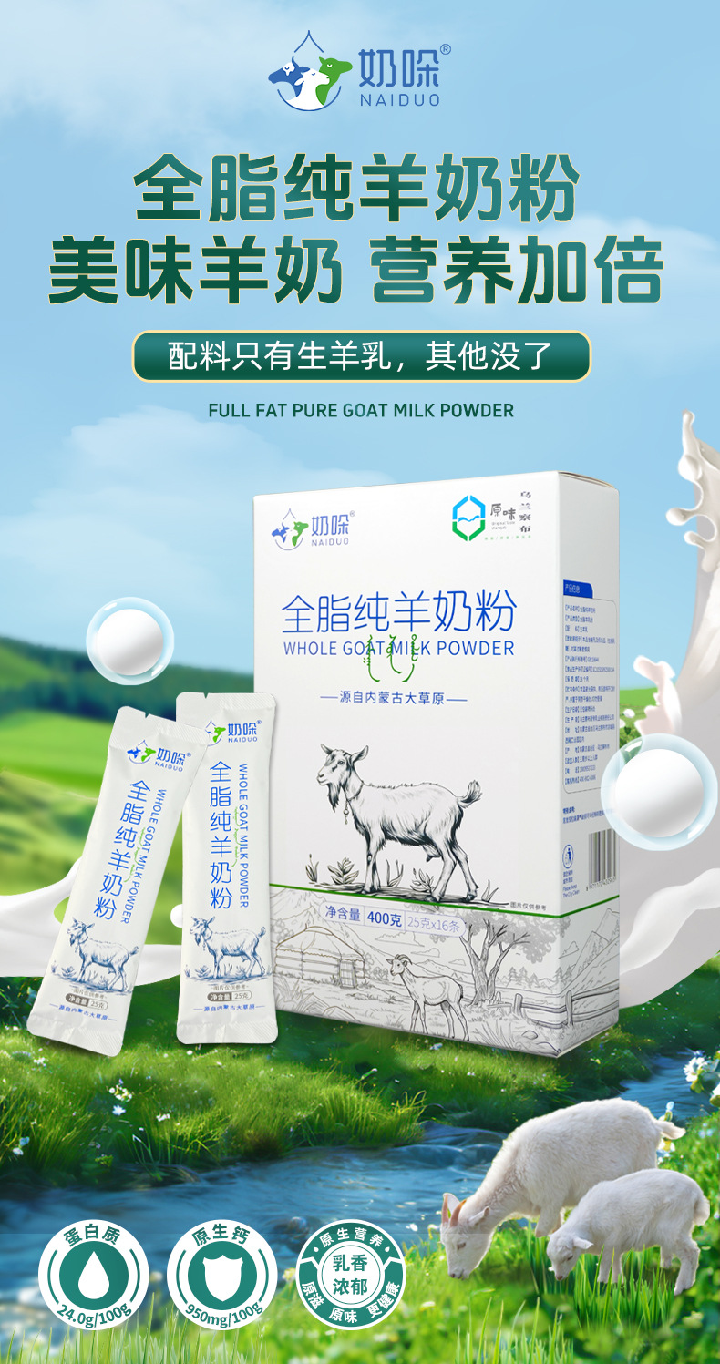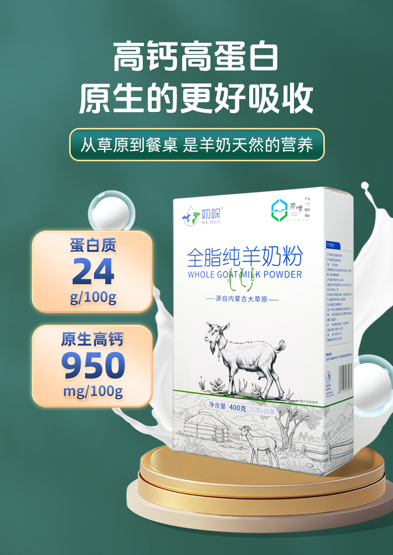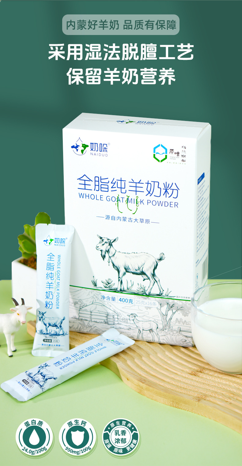 内蒙古全脂羊奶粉纯羊奶粉16*25g条装成人中老年青少年早餐 1盒