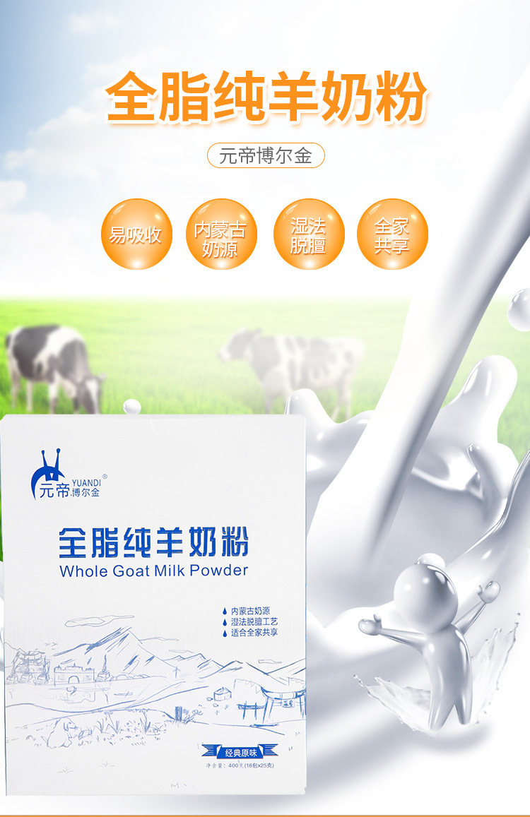 本网页所展示的有关【全脂羊奶粉 16*25g条装便携式冲泡型成人中老年青少年早餐羊奶粉 1盒_内蒙古_乌兰察布蒙帝乳业有限责任公司】的信息/图片/参数等由走进大理网的会员【乌兰察布蒙帝乳业有限责任公司】提供,由走进大理网会员【乌兰察布蒙帝乳业有限责任公司】自行对信息/图片/参数等的真实性、准确性和合法性负责,本平台(本网站)仅提供展示服务,请谨慎交易,因交易而产生的法律关系及法律纠纷由您自行协商解决,本平台(本网站)对此不承担任何责任。您在本网页可以浏览【全脂羊奶粉 16*25g条装便携式冲泡型成人中老年青少年早餐羊奶粉 1盒_内蒙古_乌兰察布蒙帝乳业有限责任公司】有关的信息/图片/价格等及提供【全脂羊奶粉 16*25g条装便携式冲泡型成人中老年青少年早餐羊奶粉 1盒_内蒙古_乌兰察布蒙帝乳业有限责任公司】的商家公司简介、联系方式等信息。