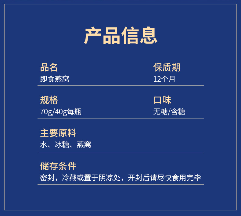 厂家直供70g即食燕窝滋补品含燕窝可加工打样即食燕窝 1000瓶