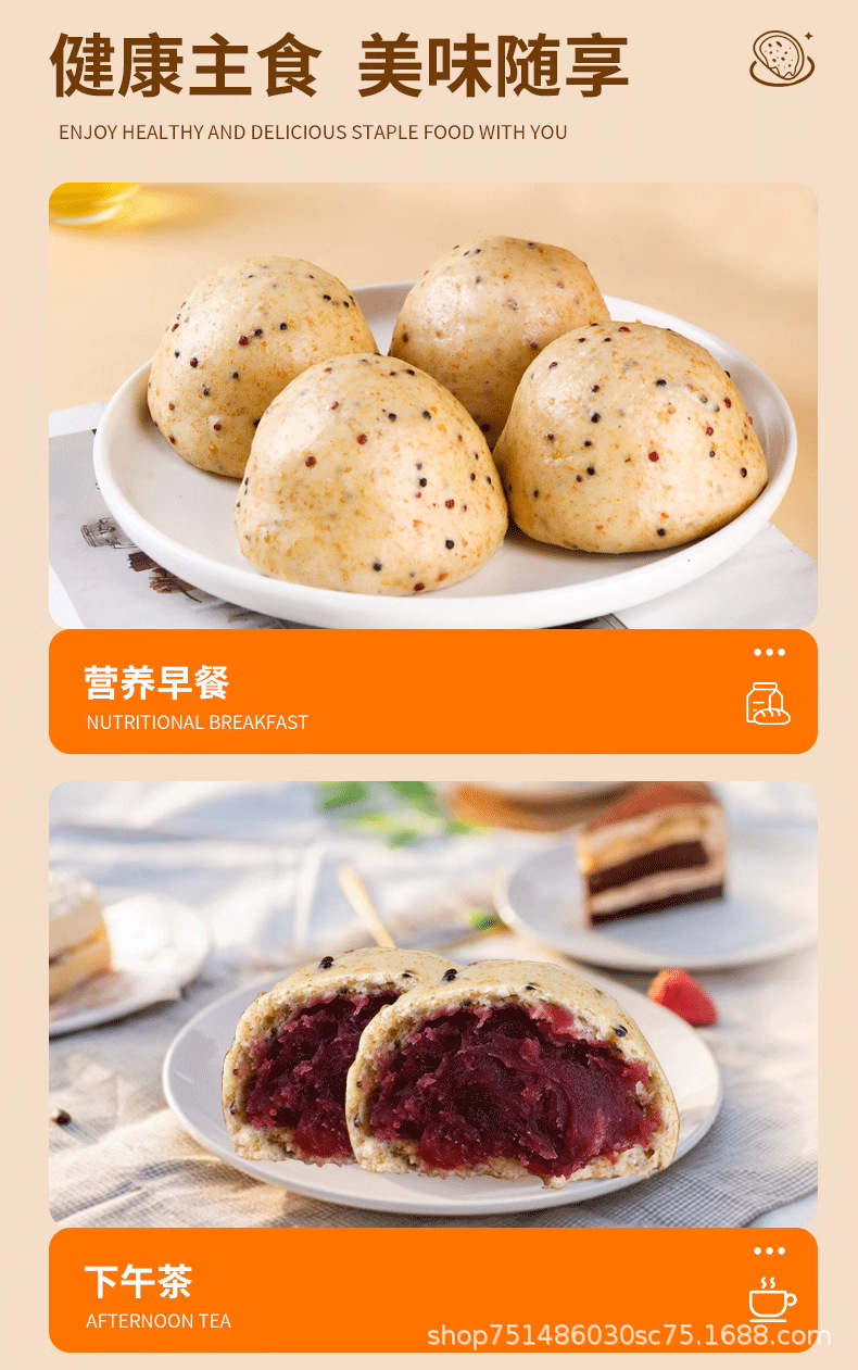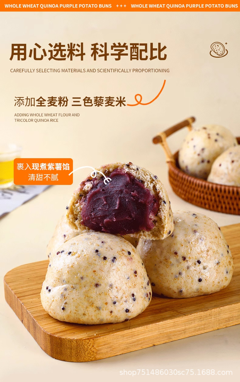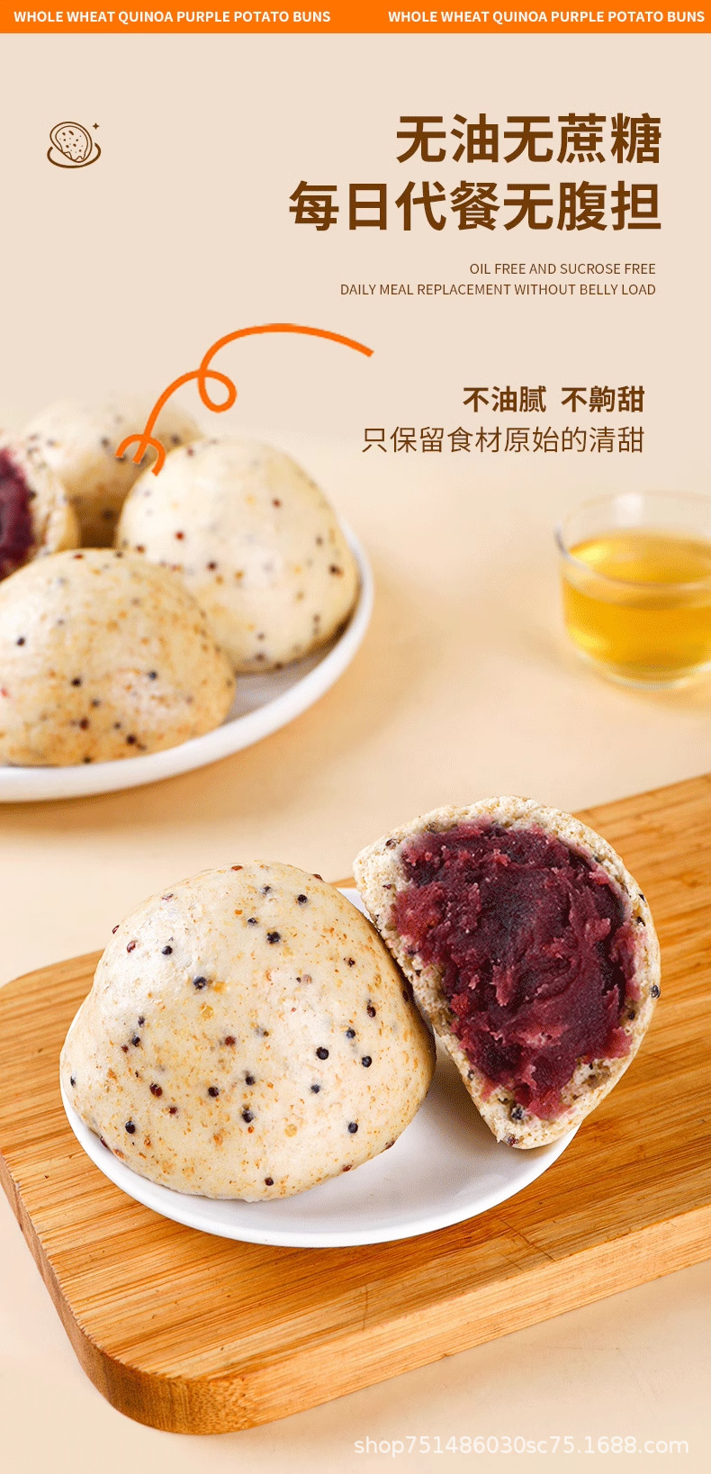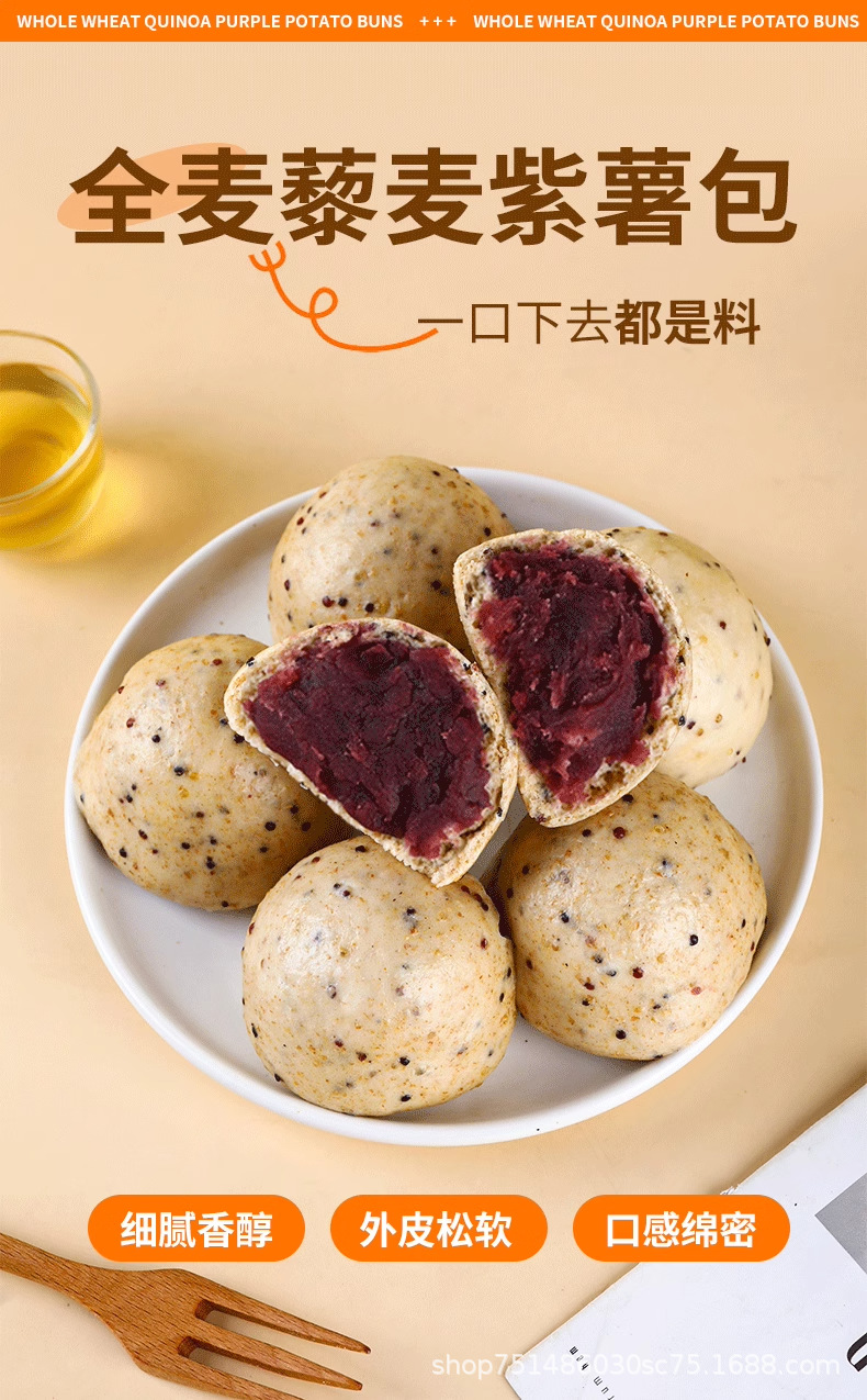 纯手工全麦藜麦紫薯包五谷杂粮馒头无加糖窝窝头包子粗粮主食早餐 1g