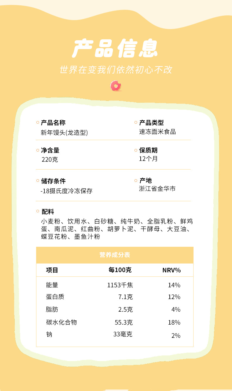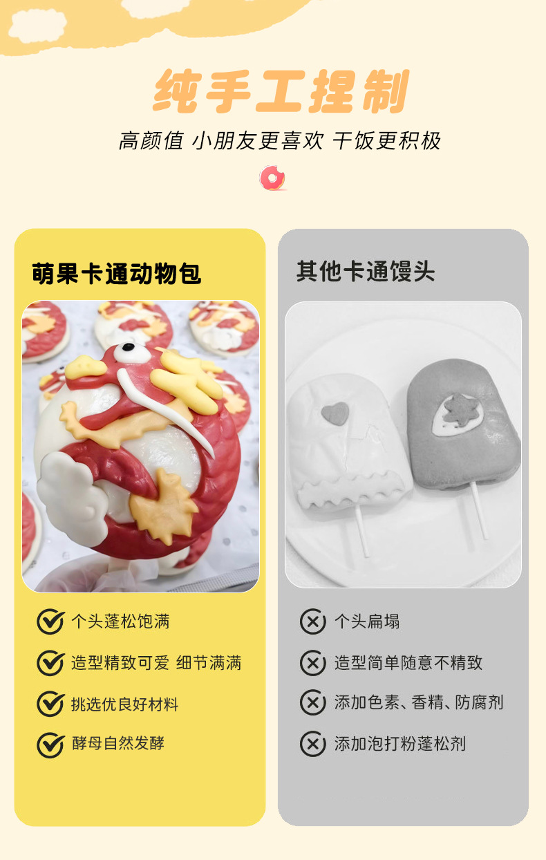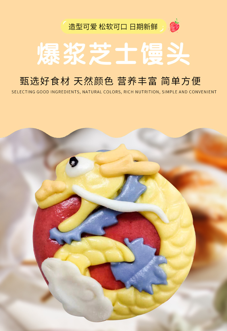 新款龙年卡通造型牛奶馒头批发鲜榨果蔬手工馒头营养早餐冷冻速食 20袋