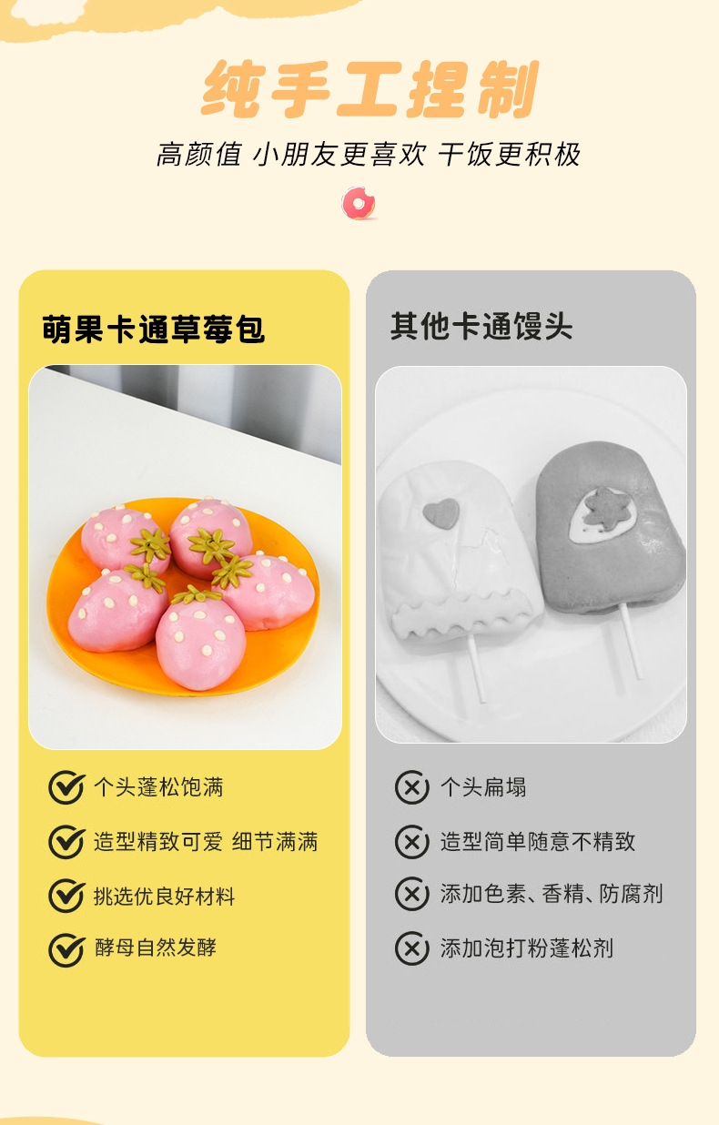 卡通包子馒头早餐儿童包子奶黄包草莓包包包辅食早饭食品面点批发 5袋