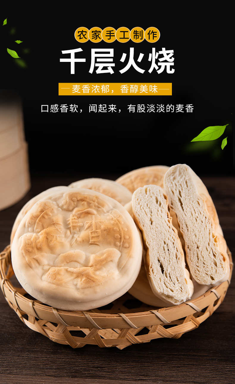山东特产潍坊全麦千层火烧纯手工杠子头面食硬面麦香馒头烧饼家用 1个