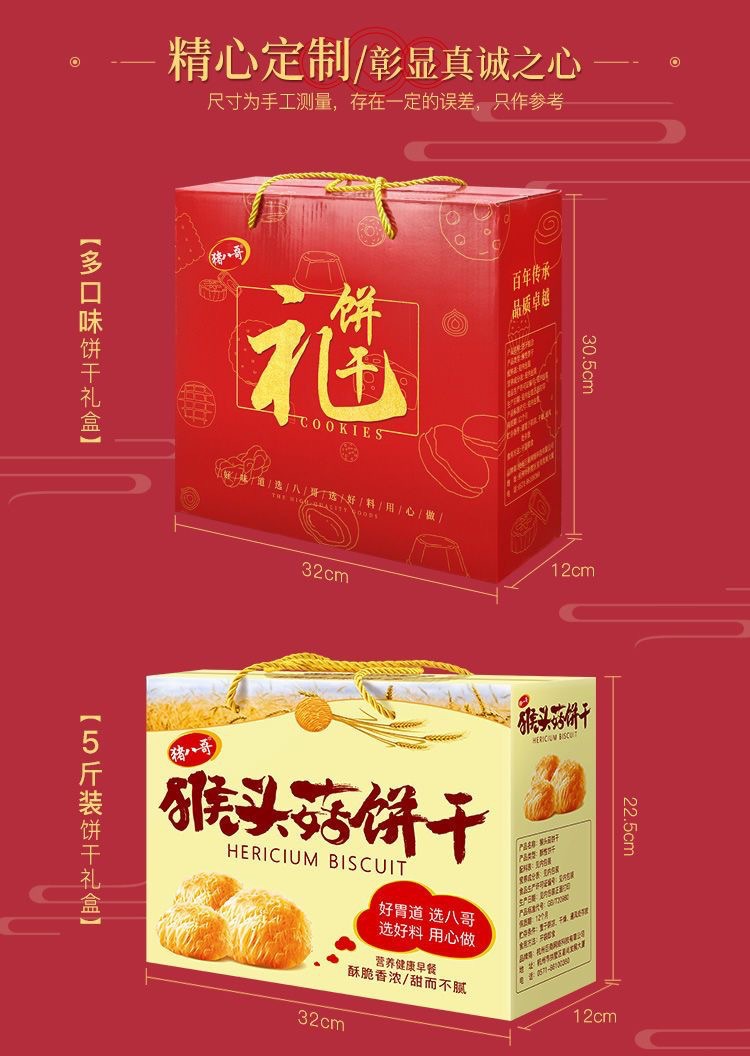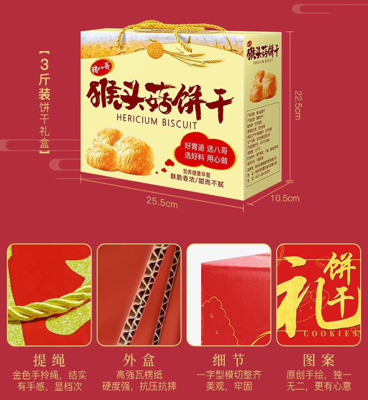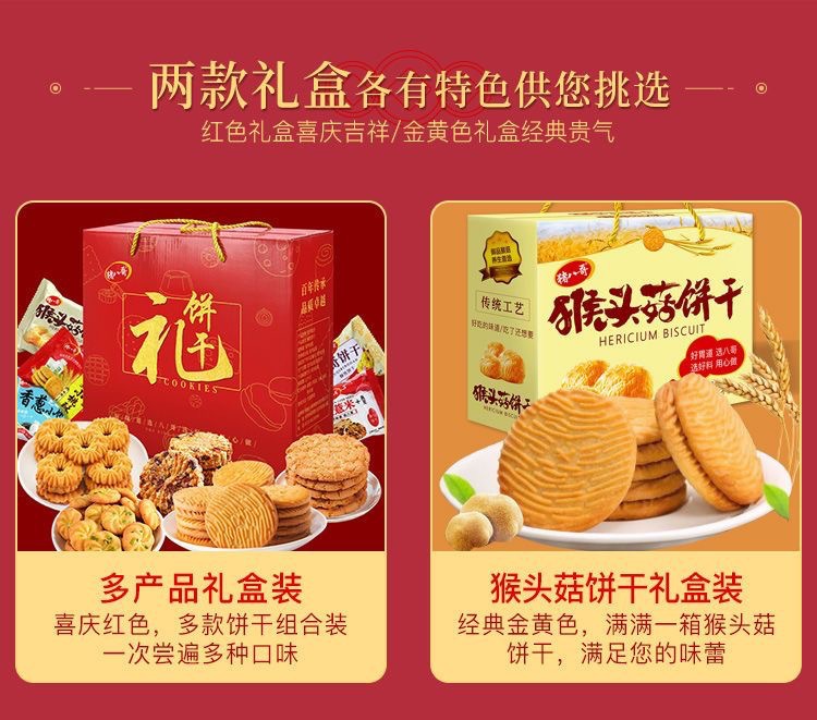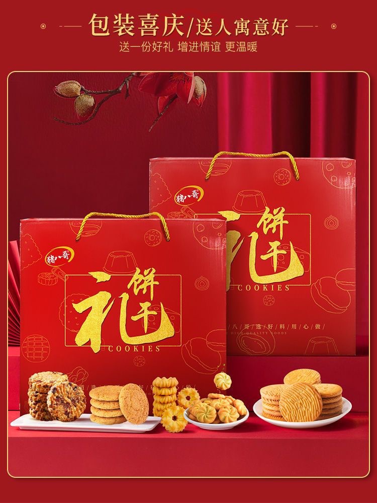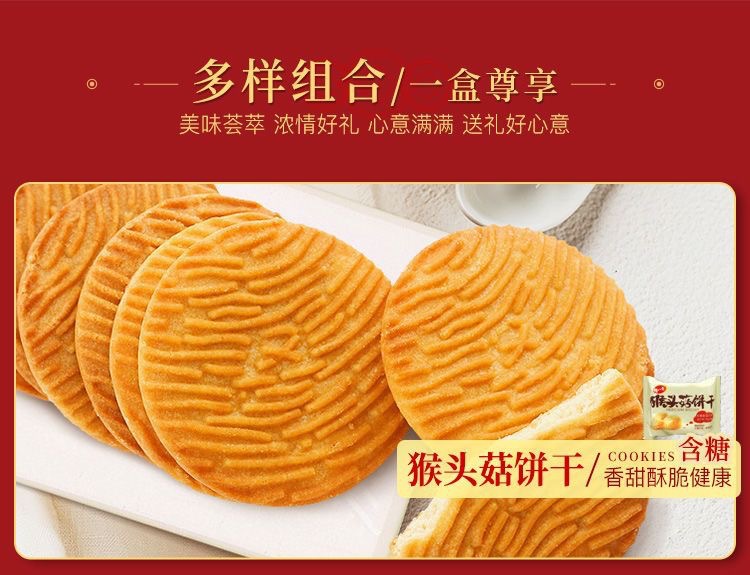 【猪八哥】饼干礼盒装整箱猴头菇饼干曲奇饼干过年送礼零食大礼包 1件