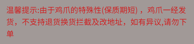 本网页所展示的有关【脱骨酸辣无骨鸡爪鸡脚柠檬凤爪解馋小零食小吃休闲食品网红爆款 1件_安徽_亳州市立念商贸有限公司】的信息/图片/参数等由走进大理网的会员【亳州市立念商贸有限公司】提供,由走进大理网会员【亳州市立念商贸有限公司】自行对信息/图片/参数等的真实性、准确性和合法性负责,本平台(本网站)仅提供展示服务,请谨慎交易,因交易而产生的法律关系及法律纠纷由您自行协商解决,本平台(本网站)对此不承担任何责任。您在本网页可以浏览【脱骨酸辣无骨鸡爪鸡脚柠檬凤爪解馋小零食小吃休闲食品网红爆款 1件_安徽_亳州市立念商贸有限公司】有关的信息/图片/价格等及提供【脱骨酸辣无骨鸡爪鸡脚柠檬凤爪解馋小零食小吃休闲食品网红爆款 1件_安徽_亳州市立念商贸有限公司】的商家公司简介、联系方式等信息。