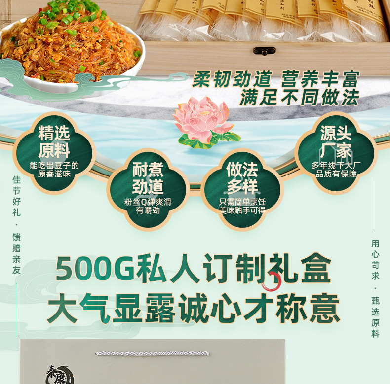 龙口粉丝礼盒装50g*10绿豆豌豆粉丝厂家现货批发酒店餐饮用粉丝 2斤
