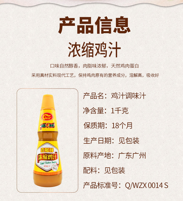本网页所展示的有关【浓缩鸡汁1kg 味当家鸡汤高汤底餐饮鸡汤面餐饮专用批发可物流自提 2箱_广东_广州味之选食品有限公司】的信息/图片/参数等由走进大理网的会员【广州味之选食品有限公司】提供,由走进大理网会员【广州味之选食品有限公司】自行对信息/图片/参数等的真实性、准确性和合法性负责,本平台(本网站)仅提供展示服务,请谨慎交易,因交易而产生的法律关系及法律纠纷由您自行协商解决,本平台(本网站)对此不承担任何责任。您在本网页可以浏览【浓缩鸡汁1kg 味当家鸡汤高汤底餐饮鸡汤面餐饮专用批发可物流自提 2箱_广东_广州味之选食品有限公司】有关的信息/图片/价格等及提供【浓缩鸡汁1kg 味当家鸡汤高汤底餐饮鸡汤面餐饮专用批发可物流自提 2箱_广东_广州味之选食品有限公司】的商家公司简介、联系方式等信息。