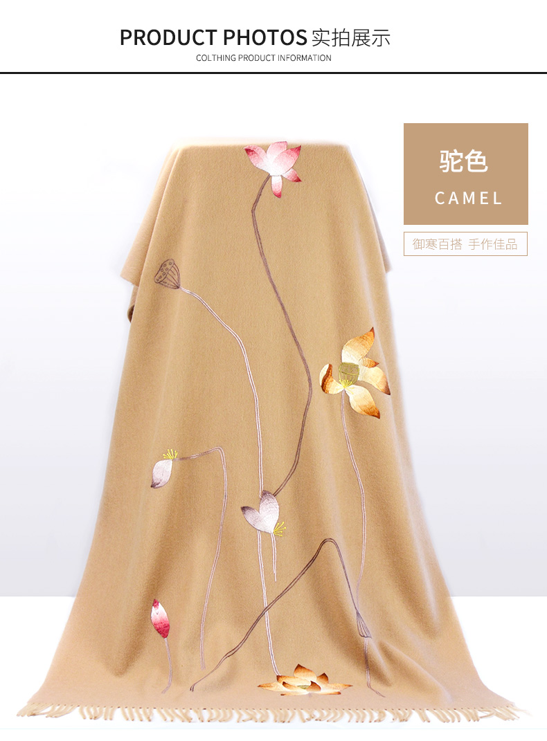 中国风商务礼品披肩 手工苏绣双面绣羊绒披肩秋冬多用大围脖 1条