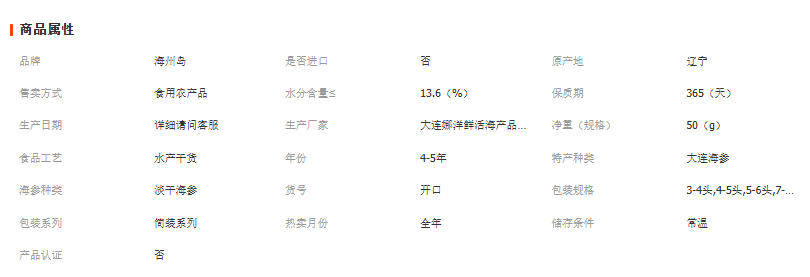 大连淡干海参50g刺参水产干货批发厂家野生辽参礼盒装开口海参 1件