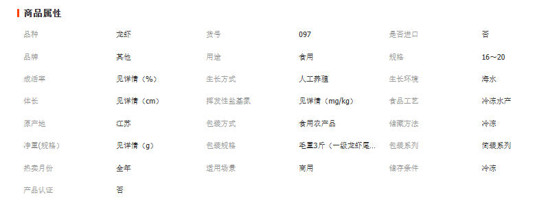 本网页所展示的有关【龙虾尾鲜活冷冻特级一级冷冻速冻大号小龙虾尾商用批发整箱 2斤_江苏_连云港胖虎海洋食品有限公司】的信息/图片/参数等由走进大理网的会员【连云港胖虎海洋食品有限公司】提供,由走进大理网会员【连云港胖虎海洋食品有限公司】自行对信息/图片/参数等的真实性、准确性和合法性负责,本平台(本网站)仅提供展示服务,请谨慎交易,因交易而产生的法律关系及法律纠纷由您自行协商解决,本平台(本网站)对此不承担任何责任。您在本网页可以浏览【龙虾尾鲜活冷冻特级一级冷冻速冻大号小龙虾尾商用批发整箱 2斤_江苏_连云港胖虎海洋食品有限公司】有关的信息/图片/价格等及提供【龙虾尾鲜活冷冻特级一级冷冻速冻大号小龙虾尾商用批发整箱 2斤_江苏_连云港胖虎海洋食品有限公司】的商家公司简介、联系方式等信息。