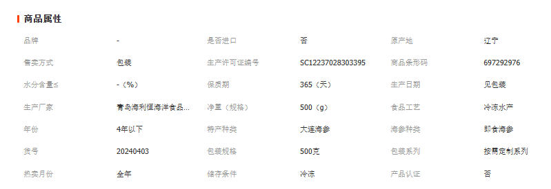 本网页所展示的有关【大连鲜食海参非干货冷冻底播水产海参单只独立外包装野生辽刺海参 1包_辽宁_星华恒达(青岛)食品有限公司】的信息/图片/参数等由走进大理网的会员【星华恒达(青岛)食品有限公司】提供,由走进大理网会员【星华恒达(青岛)食品有限公司】自行对信息/图片/参数等的真实性、准确性和合法性负责,本平台(本网站)仅提供展示服务,请谨慎交易,因交易而产生的法律关系及法律纠纷由您自行协商解决,本平台(本网站)对此不承担任何责任。您在本网页可以浏览【大连鲜食海参非干货冷冻底播水产海参单只独立外包装野生辽刺海参 1包_辽宁_星华恒达(青岛)食品有限公司】有关的信息/图片/价格等及提供【大连鲜食海参非干货冷冻底播水产海参单只独立外包装野生辽刺海参 1包_辽宁_星华恒达(青岛)食品有限公司】的商家公司简介、联系方式等信息。