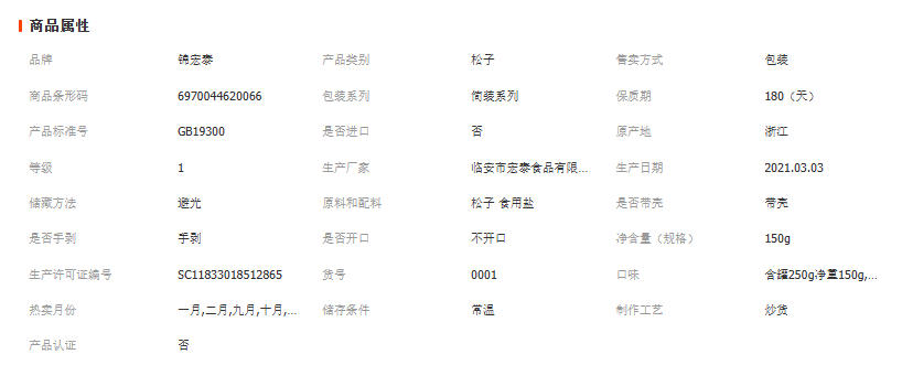 本网页所展示的有关【锦宏泰 手剥巴西松子原味新货毛重量250g净含量150g净重500g罐装 2罐_浙江_杭州临安宏泰食品有限公司】的信息/图片/参数等由走进大理网的会员【杭州临安宏泰食品有限公司】提供,由走进大理网会员【杭州临安宏泰食品有限公司】自行对信息/图片/参数等的真实性、准确性和合法性负责,本平台(本网站)仅提供展示服务,请谨慎交易,因交易而产生的法律关系及法律纠纷由您自行协商解决,本平台(本网站)对此不承担任何责任。您在本网页可以浏览【锦宏泰 手剥巴西松子原味新货毛重量250g净含量150g净重500g罐装 2罐_浙江_杭州临安宏泰食品有限公司】有关的信息/图片/价格等及提供【锦宏泰 手剥巴西松子原味新货毛重量250g净含量150g净重500g罐装 2罐_浙江_杭州临安宏泰食品有限公司】的商家公司简介、联系方式等信息。