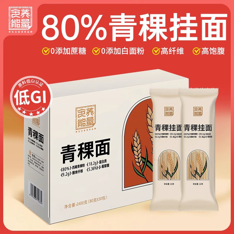 巨香80%青稞面条低脂肪高蛋白80g/包挂面粗粮代餐主食面条 1袋