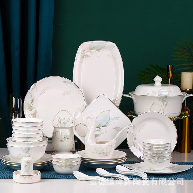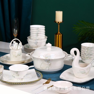 2023新款高档碗碟套装家用现代轻奢景德镇陶瓷骨瓷餐具餐具乔迁 1套