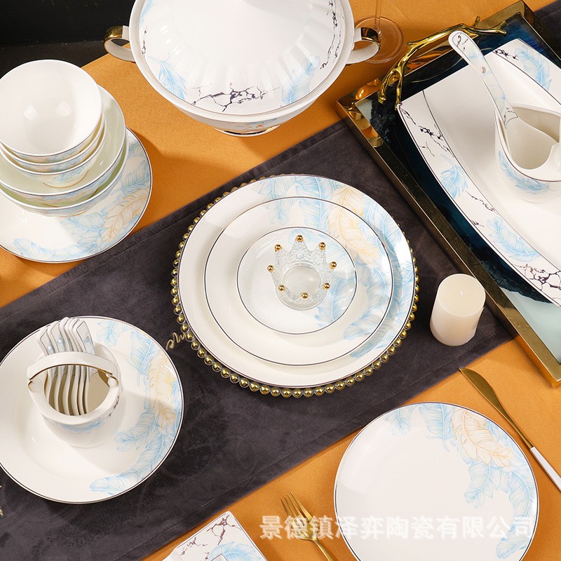 景德镇骨瓷餐具套装2023新款中式轻奢碗碟套装家用釉中彩高级感乔 1套