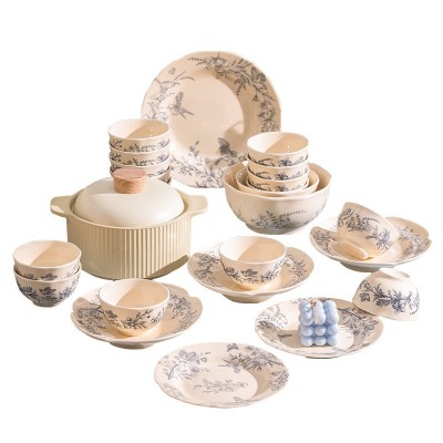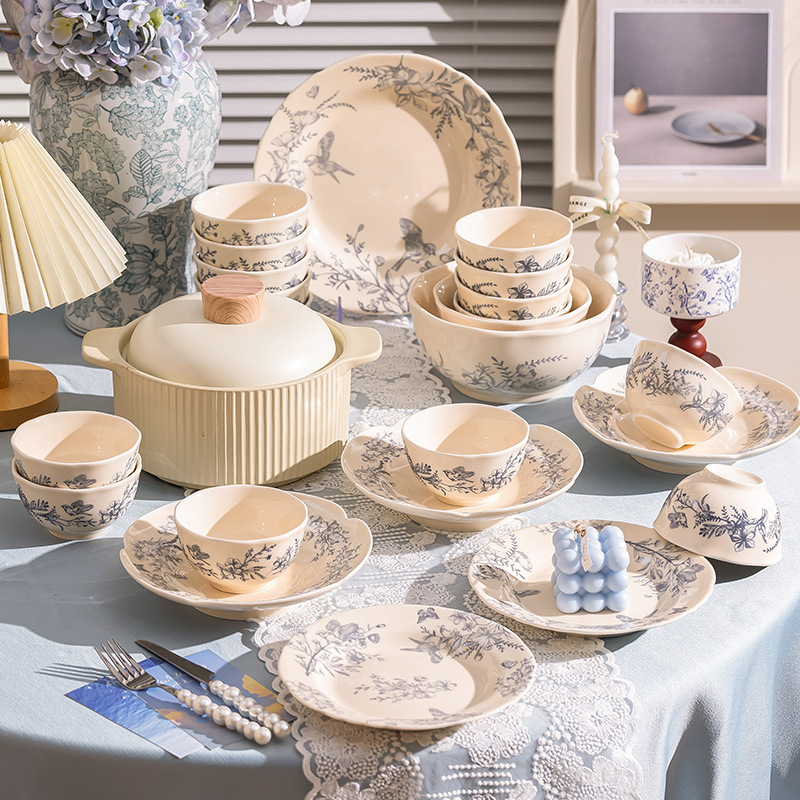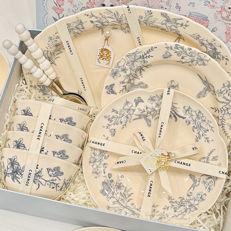 新款法式风碗碟套装家用高颜值ins风陶瓷餐具碗盘碟子乔迁送礼碗 2件