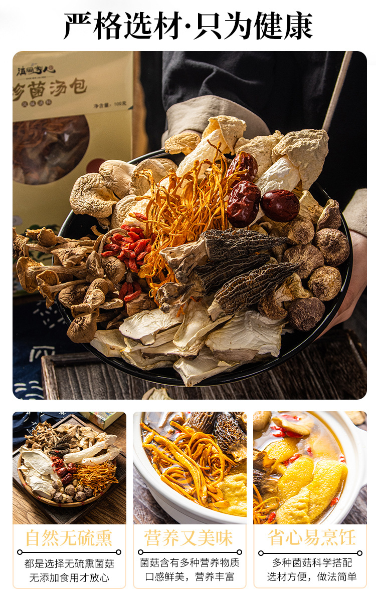 云南山珍菌汤包七彩菌汤包菌菇包羊肚菌松茸菌汤包煲汤干货整箱2袋