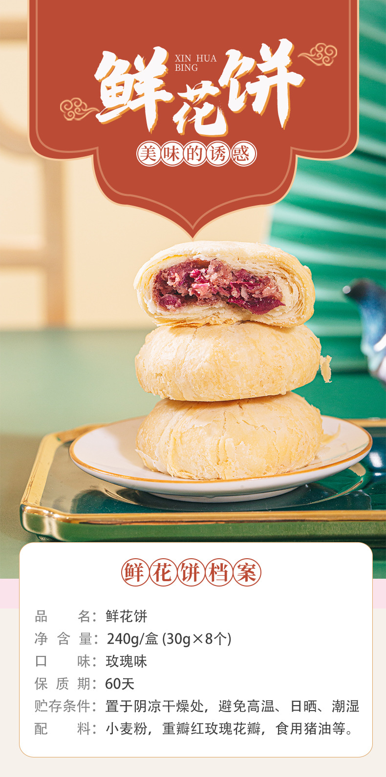 云南特产 鲜花饼 玫瑰饼点心糕点面包零食鲜花饼礼盒厂家批发5盒