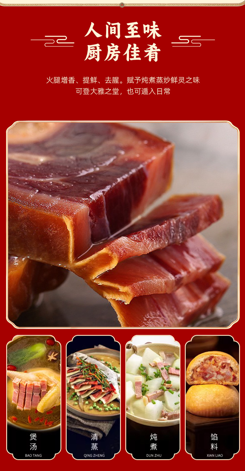 正宗金华火腿纯精去骨火腿块带骨火腿芯整腿切片炒菜煲汤腌腊咸肉1件