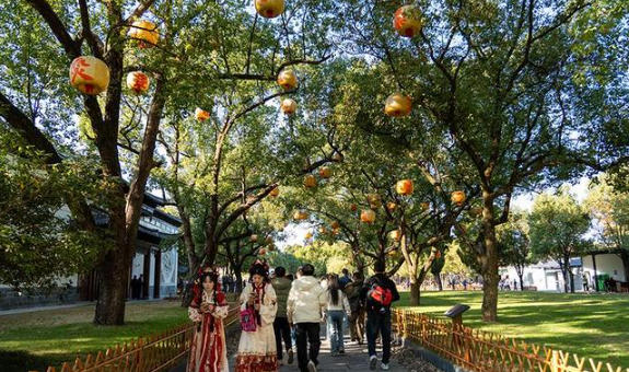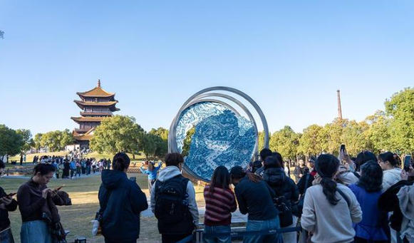 人民网景德镇12月1日电 (龙楚良)11月29日,“何以中国 瓷耀千年”网络达人媒体行采访团走进江西省景德镇市陶阳里历史文化旅游区。林荫步道上游人如织,游客纷纷在“网红机位”前排队打卡,热闹气息扑面而来。