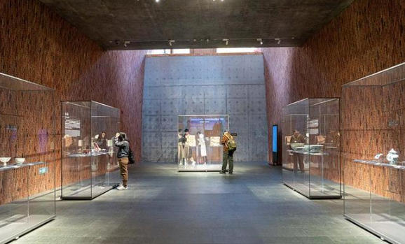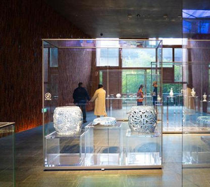 景德镇御窑博物馆内,修复的古瓷文物展品吸引游客驻足拍照。人民网 龙楚良摄