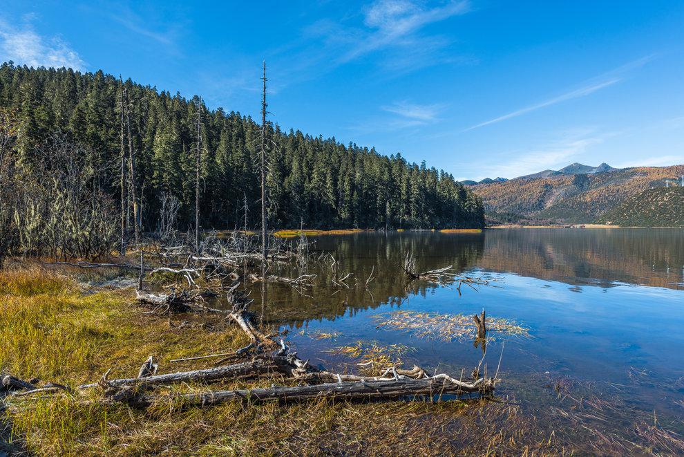 香格里拉普达措国家公园是我国大陆上第一个国家公园,游客能够参观的部分仅仅只占公园总面积的3%,一年四季都适合来普达措,春天有花,冬天有雪,夏天凉爽,而秋天,有颜色,秋日下森林的颜色也变得丰富多彩,微黄、苍黄、烈红、淡紫、浓绿,复数形式的颜色把普达措渲染成了缤纷的画卷。秋天的雨量也远远小于夏季,通透的蓝天,能让你感觉天空触手可及。