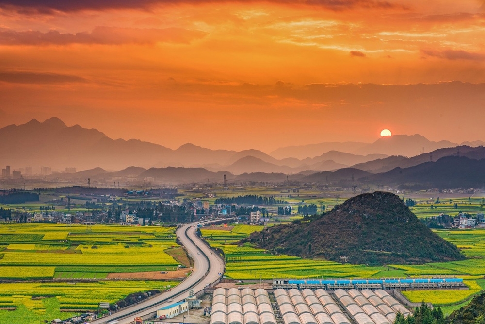 (1)金鸡峰:此处的油菜花田比较平坦,远处有小山丘凸起,一望无际。适合日出拍摄以及进花海拍照。