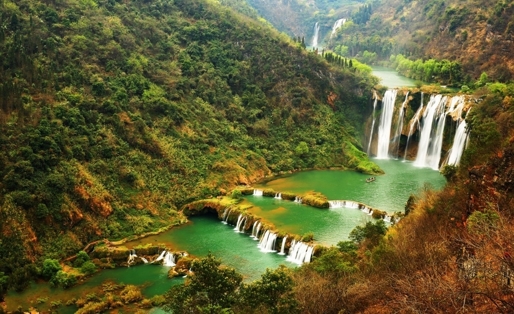 (3)除了上面介绍的罗平油菜花田,罗平还有两处同样不可错过的地方:九龙瀑布:县城东北22公里以堵勒村旁;多依河景区:县城东南40公里。
