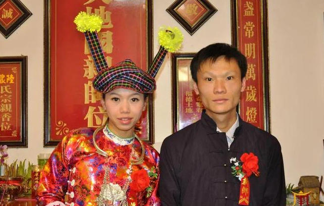 一唱一答,增添了送亲的喜庆气氛。新娘来到男方家门口,么公在新娘四周画符念咒点洒清水,以驱除“一路同行”的鬼邪;拜堂时辰未到,新娘不能进门,在耳房、柴房或亲戚家里住,有的住两三天才得进门拜堂。土支系婚俗中,新娘进门时要排除男方家事先用草墩等在门槛设置的障碍物,以示在今后生活中勇敢担当,勤俭持家的勇气。新娘进屋后,按习俗,送亲者要把新娘的嫁妆和结婚用品一一陈列展示,有的地方还一一过秤,以显示嫁妆的丰富和娘家的阔气。之后,要举行拜堂仪式。